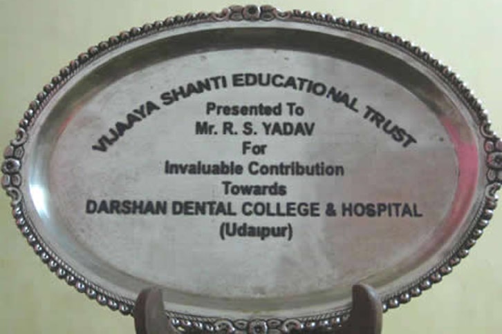 Our CMD Er. R.S. Yadav has been felicitated by the Trustees of Vijaaya Shanti Educational Trust for his Invaluable contribution towards timely construction and completion of Our Project Darshan Dental College and Hospital Udaipur in a short span of 100 days.